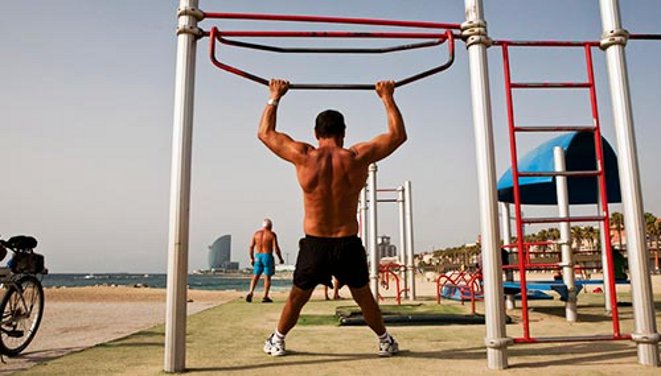 En algunes ciutats, com ara Barcelona, existeixen equipaments urbans que faciliten la pràctica esportiva a qui hi estigui interessat. Es troben, per exemple, marcats els